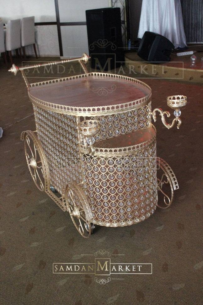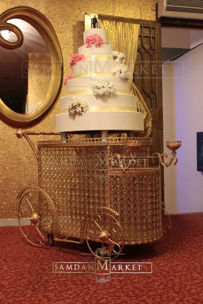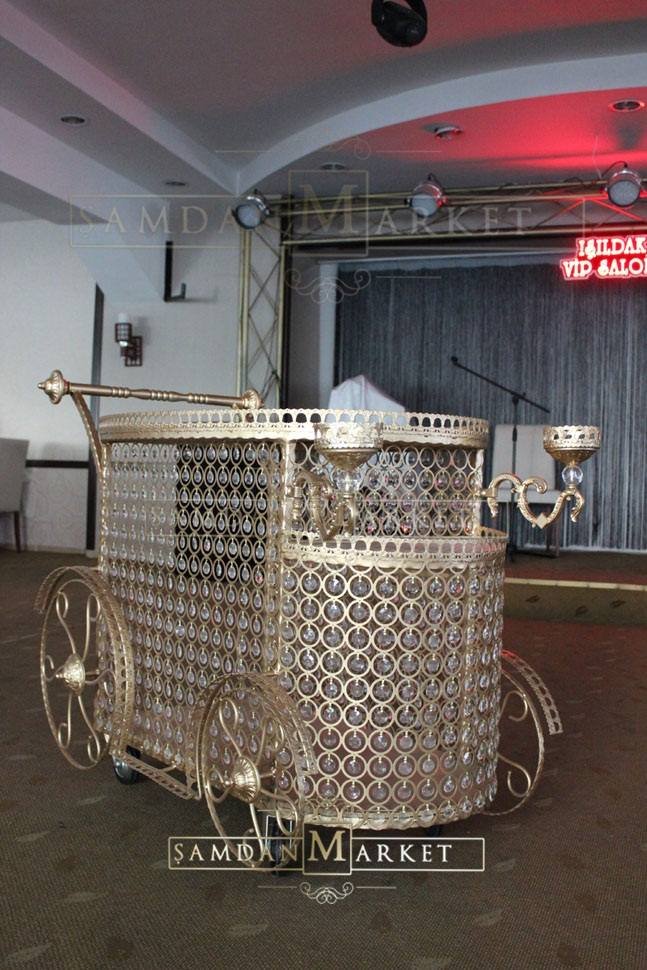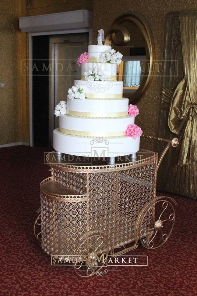 Oval tabla, geniş gövde, taşlar ve tüksek tutamacı ile görsel olarak pasta kesme töreninde salonunuza ihtişamlı bir giriş için harika bir seçenek.